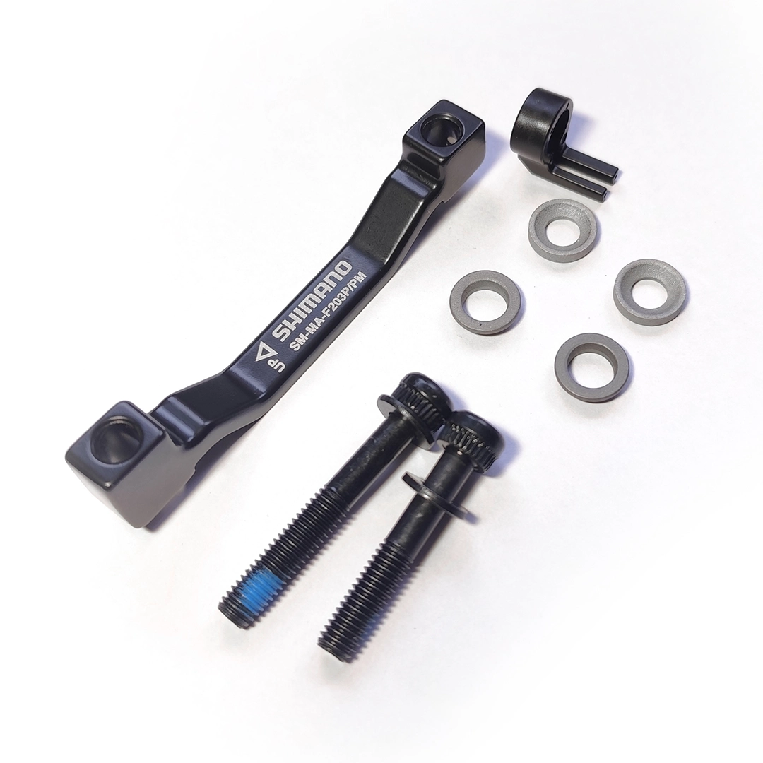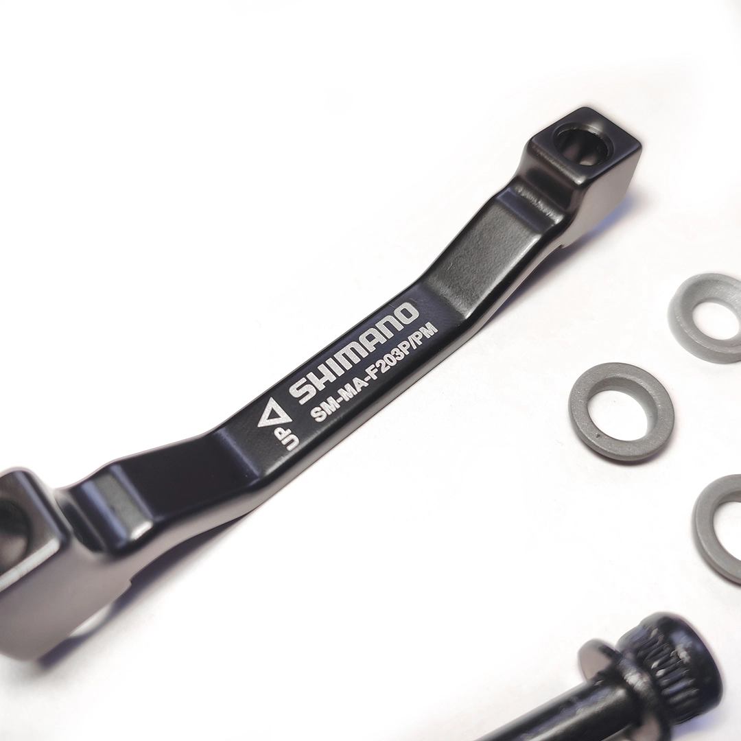 Adaptador de caliper freno de disco de montaje posterior Shimano MA-F203P/PM (frontal). Apto para horquillas que por defecto traen discos de 180mm sin adaptadores.